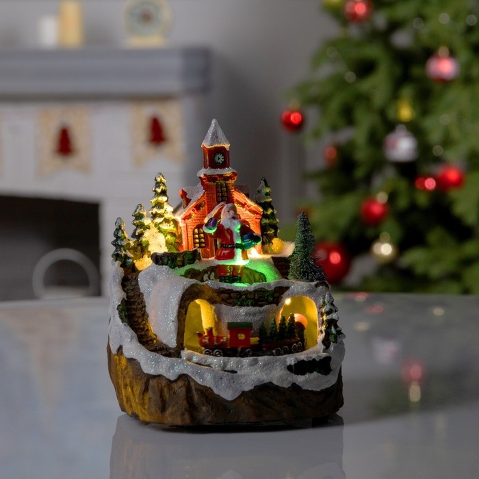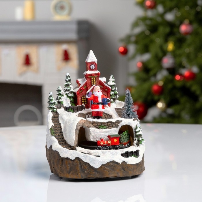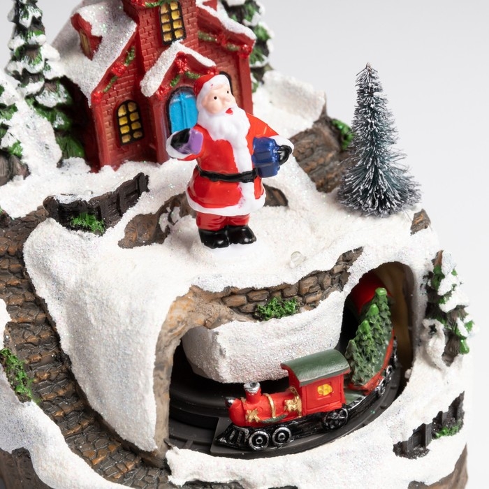 Светодиодная фигура «Поезд и Дед Мороз» 16 × 10 × 12 см, полистоун, батарейки АААх2 (не в комплекте), USB, свечение тёплое белое