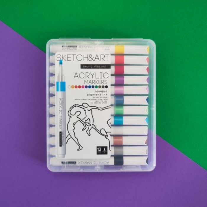 Набор акриловых маркеров 12 цветов SKETCH&ART, 1,0-3,0 мм