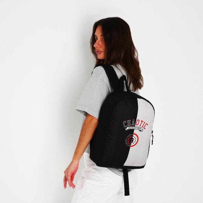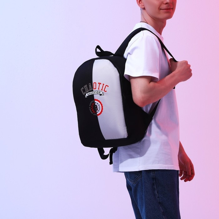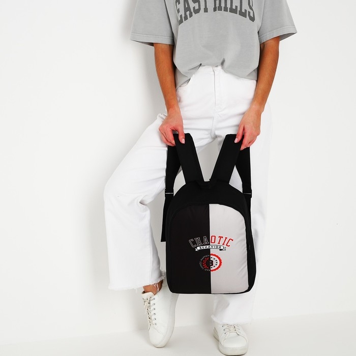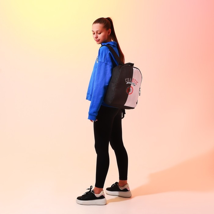 Рюкзак школьный текстильный Chaotic, 38х14х27 см, цвет чёрный/серый