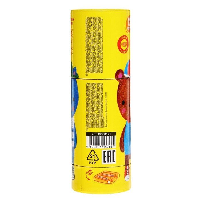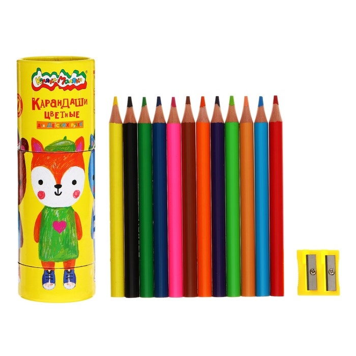 Карандаши 12 цветов "JUMBO" Каляка-Маляка, в тубусе с точилкой, утолщенный грифель, круглый пластиковый корпус
