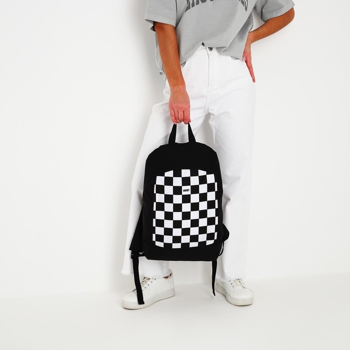Рюкзак школьный текстильный Lucky, 46х30х10 см, вертикальный карман, цвет чёрный
