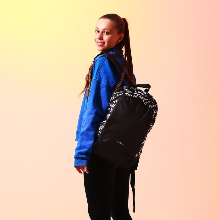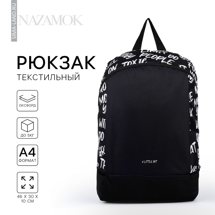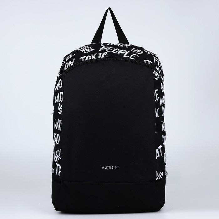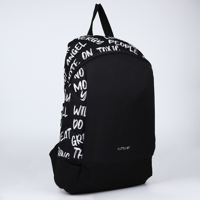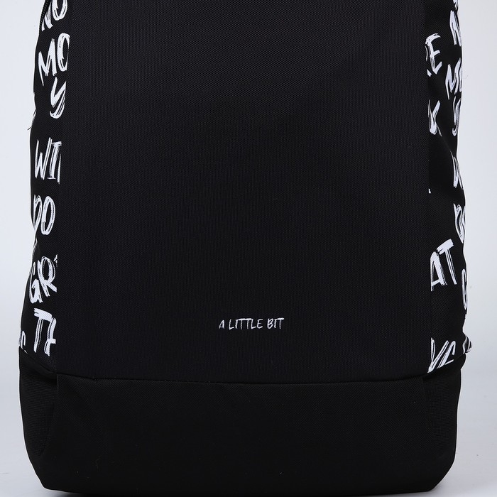 Рюкзак школьный текстильный «Надписи», 46х30х10 см, вертикальный карман, цвет чёрный