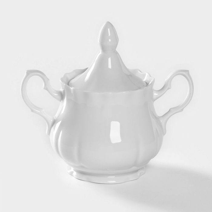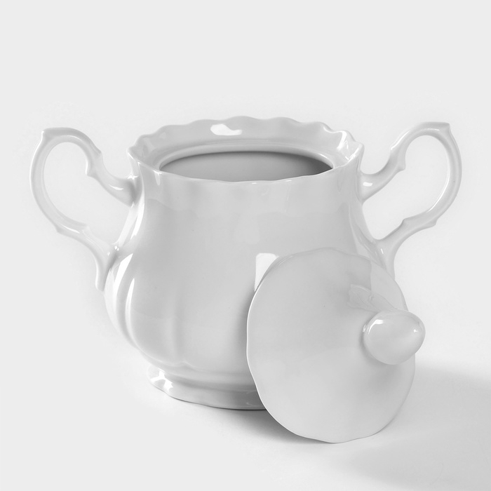 Сахарница фарфоровая «Романс», 550 мл, с крышкой, цвет белый