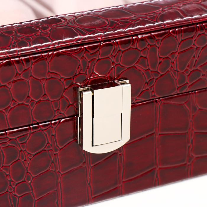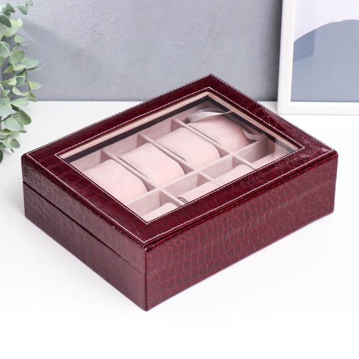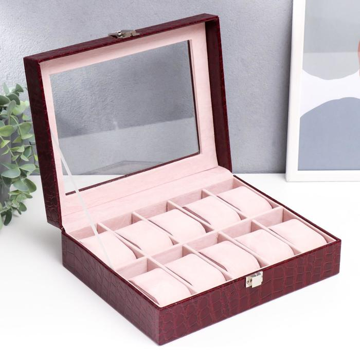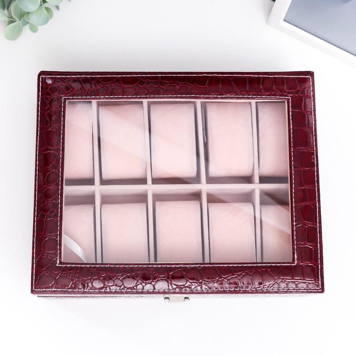 Шкатулка кожзам под часы 10 отделений "Бордо" 8х26х20 см