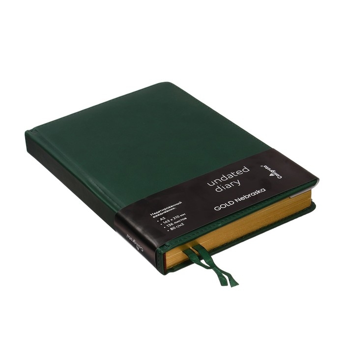 Ежедневник НЕдатированный А5, 136 листов в линейку, кожзам "Небраска", золотой срез, зеленый