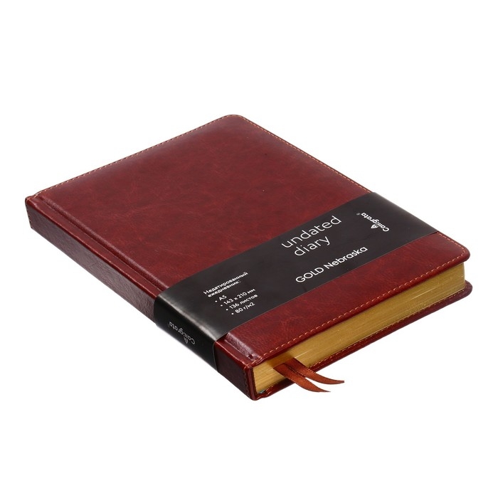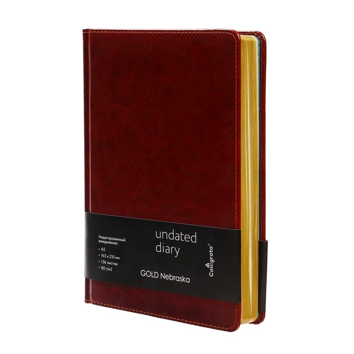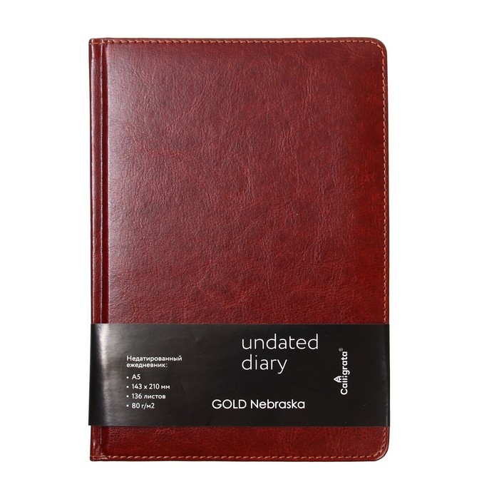Ежедневник недатированный А5, 136 листов в линейку, кожзам "Небраска", золотой срез, коричневый