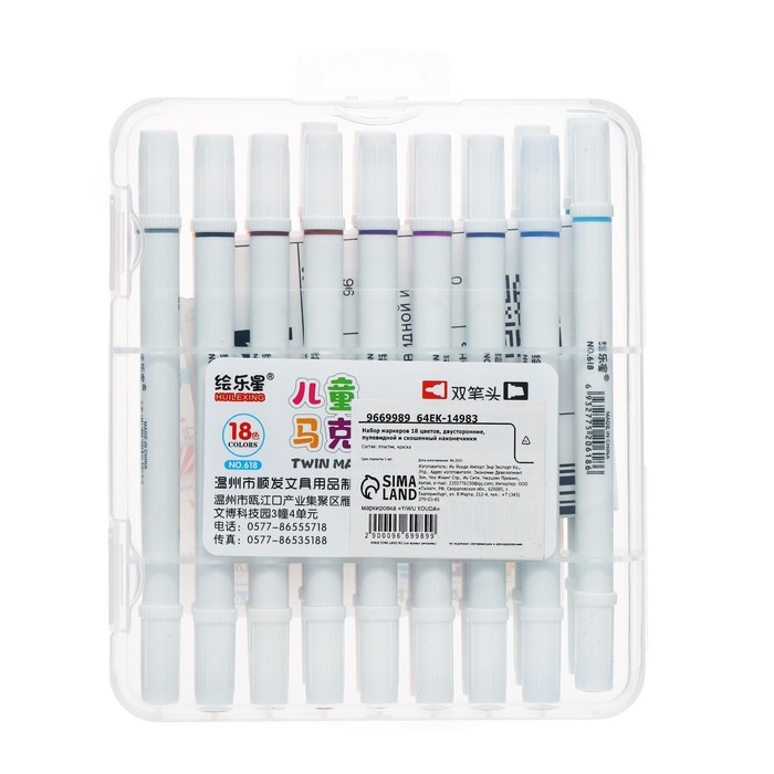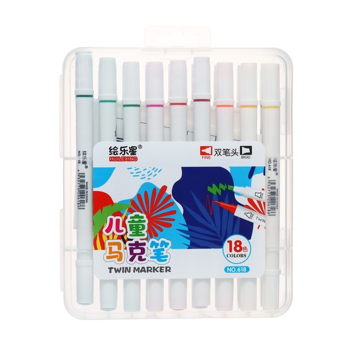 Набор маркеров, двусторонние, пулевидный и скошенный наконечники, 18 цветов
