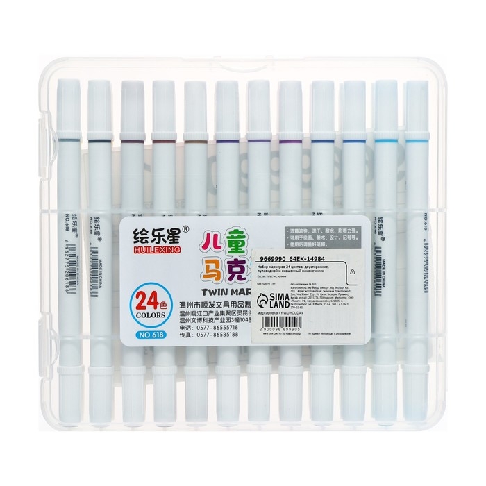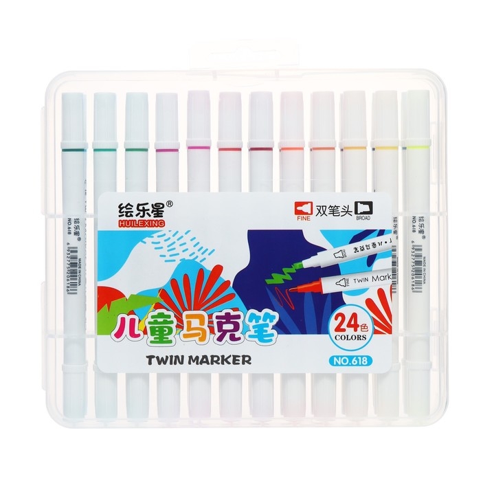 Набор маркеров, двусторонние, пулевидный и скошенный наконечники, 24 цветов