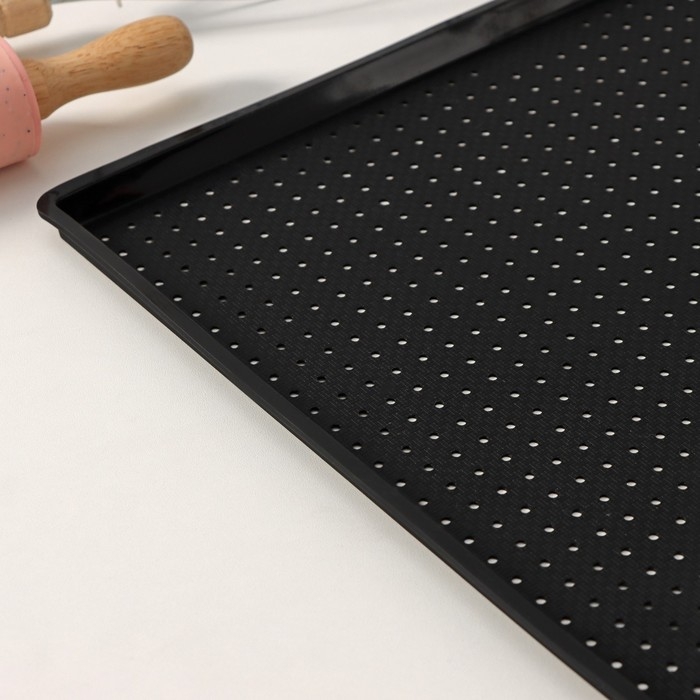 Коврик перфорированный прямоугольный Доляна, силикон, 40×31×1 см, цвет чёрный