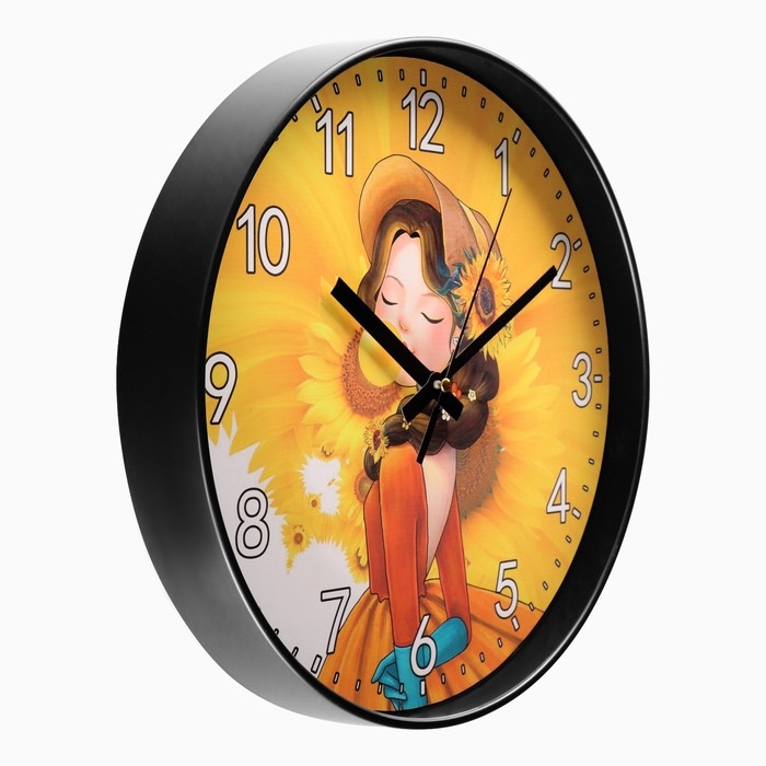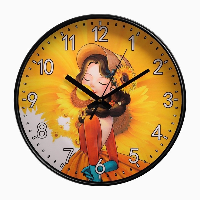 Часы настенные интерьерные "Девушка с подсолнухом", d-30 см, бесшумные