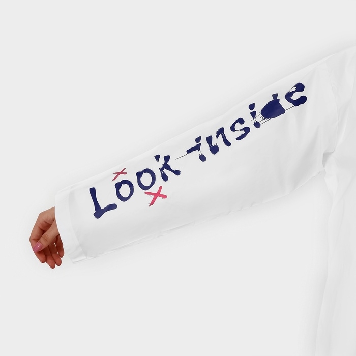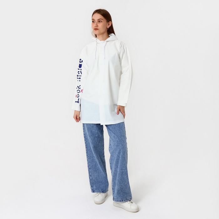 Дождевик взрослый укороченный LOOK INSIDE, на кнопках, цвет белый, размер 42-48