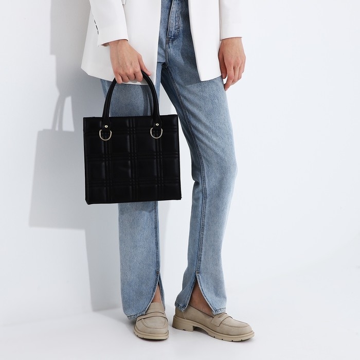 Сумка женская тоут на молнии, цвет чёрный