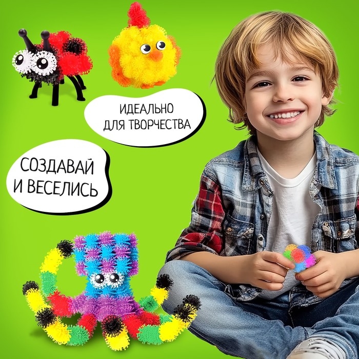 Сказки появляются там, где есть «Весёлые пушистики». Этот конструктор — начало для невероятных историй, которые только и ждут, чтобы их придумали. Откройте для ребёнка мир, где из пушистых шариков и дополнительных деталей можно создать всё что угодно — от сказочных животных до невероятных механизмов.