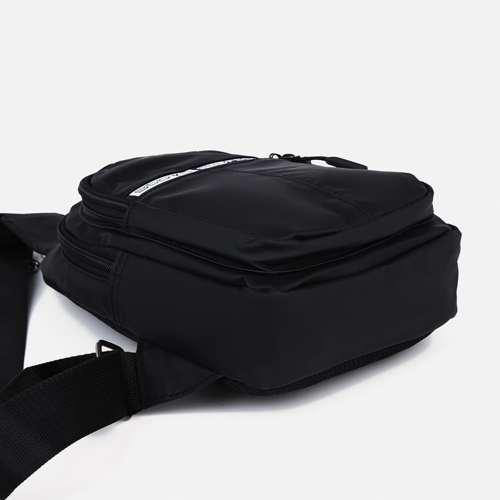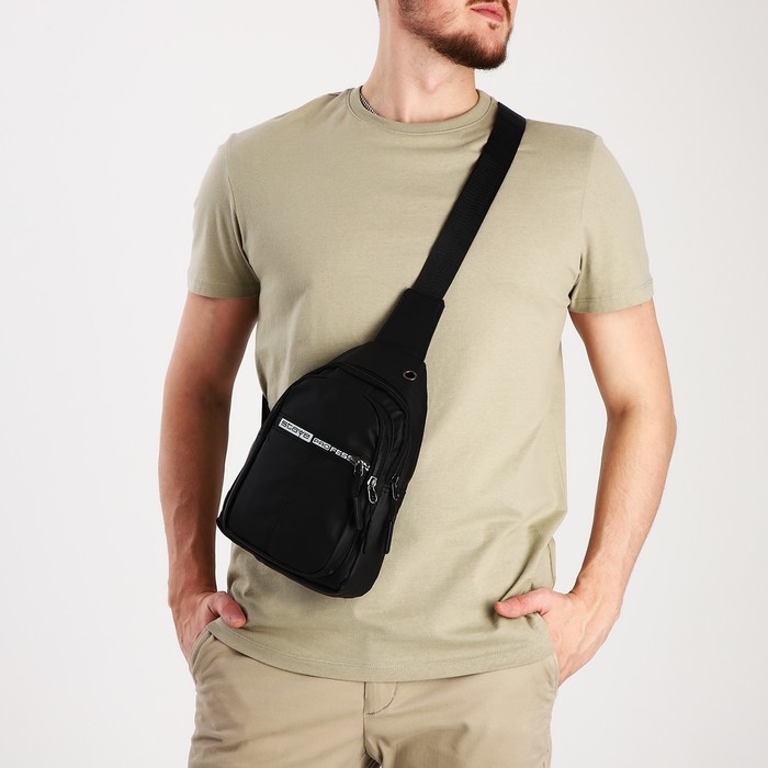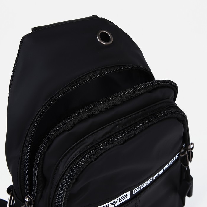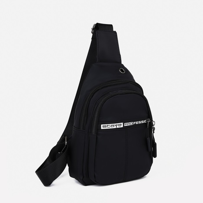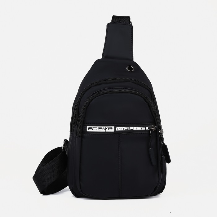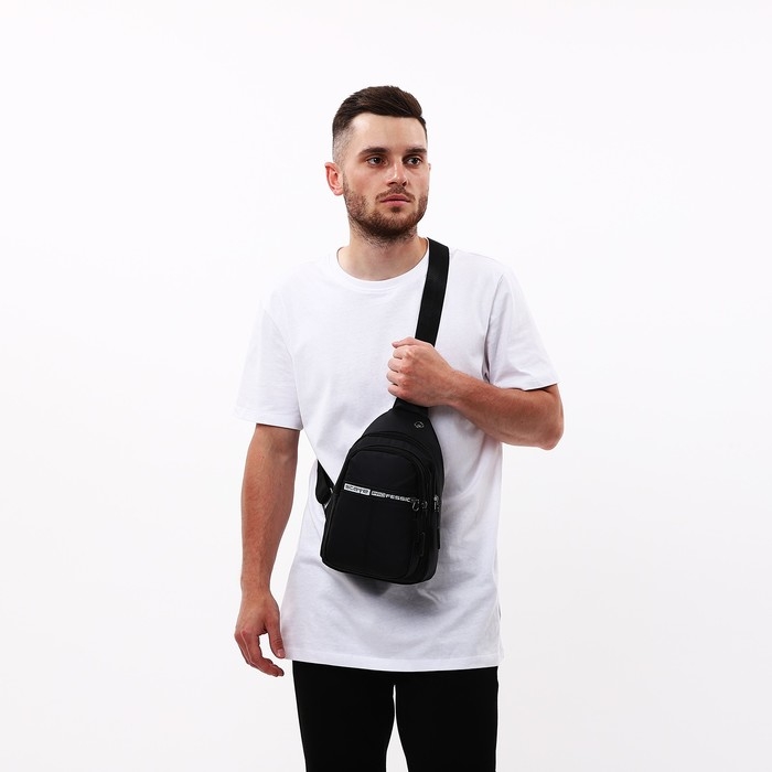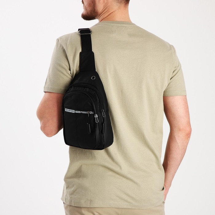 Сумка-слинг мужская из текстиля, отверстие для наушников, цвет чёрный