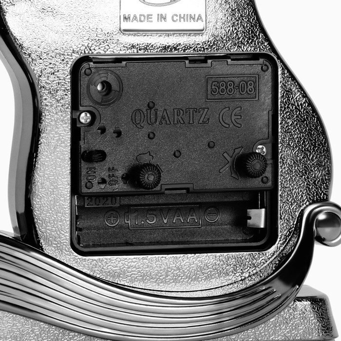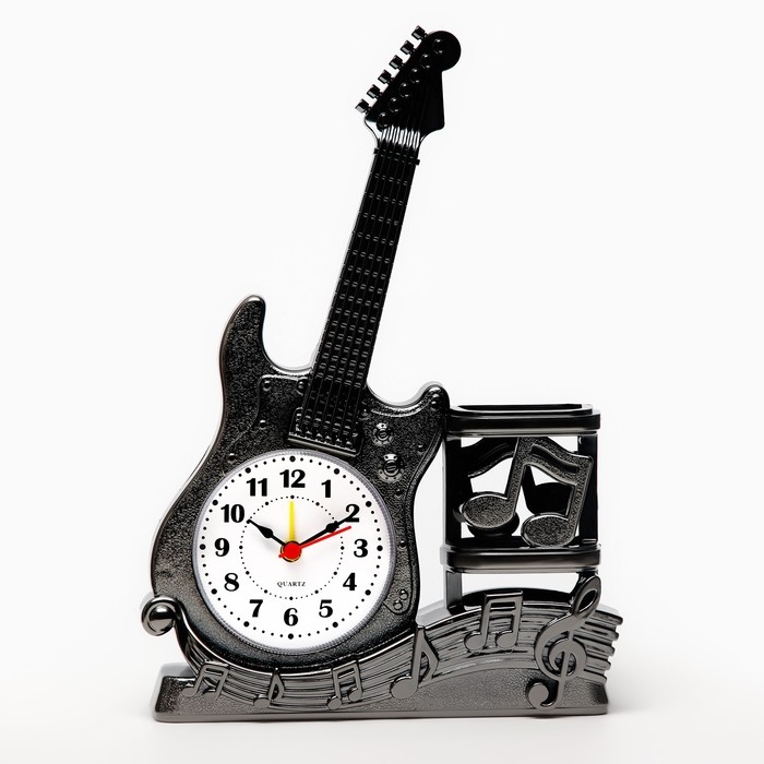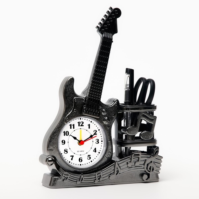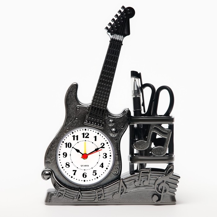Будильник "Гитара", дискретный ход, с карандашницей, 1АА, 15.5 х 22 х 5.5 см, серебро