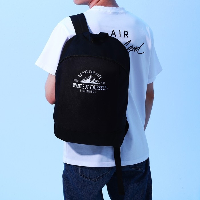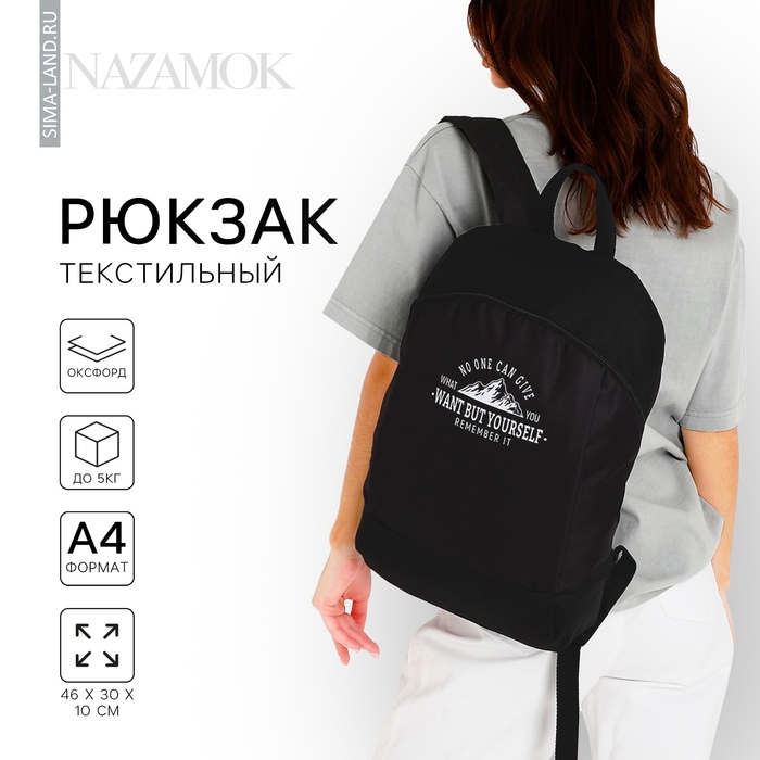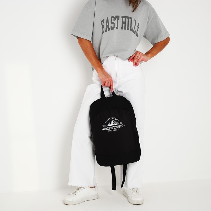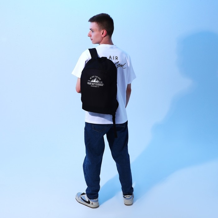 Рюкзак школьный текстильный «Горы», 46х30х10 см, вертикальный карман, цвет чёрный