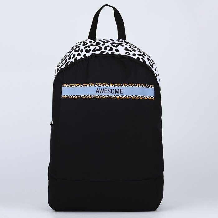 Рюкзак школьный текстильный Awesome, 46х30х10 см, вертикальный карман, цвет чёрный