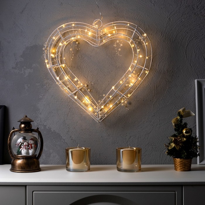 Светодиодная фигура «Сердце с бусинами» 40.5 × 39.5 см, металл, батарейки ААх2 (не в комплекте), свечение тёплое белое