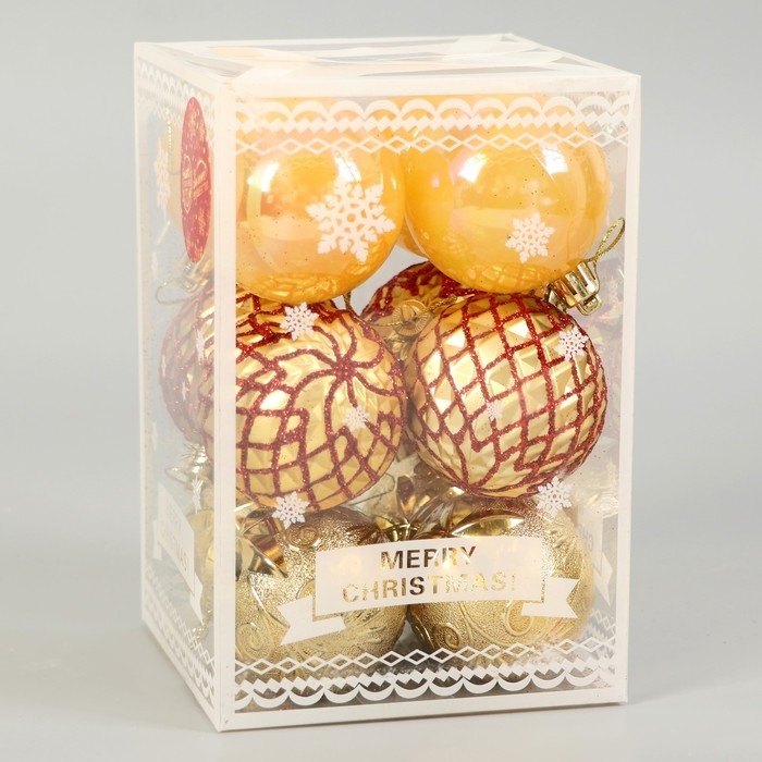 Набор шаров пластик d-6 см, 12 шт "Мелодия" грани, золото