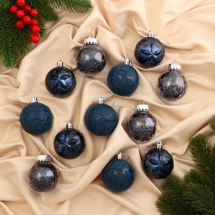 Набор шаров пластик d-6 см, 12 шт "Зимняя музыка" узор, синий