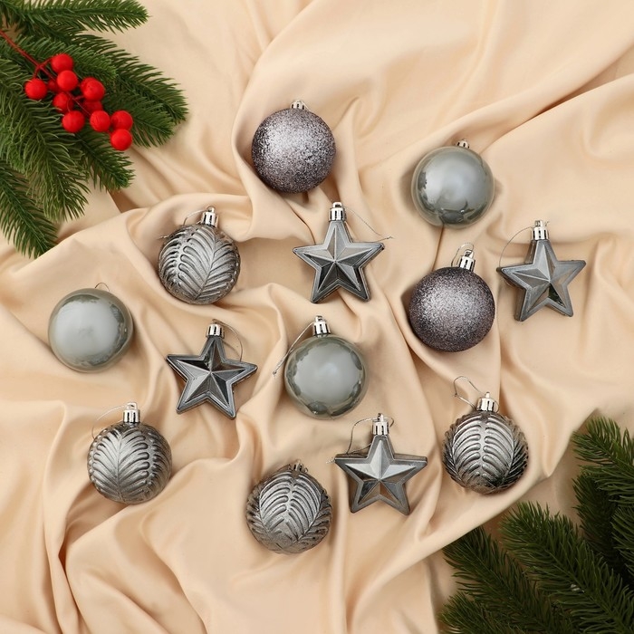 Набор украшений пластик 13 шт "Мелодия" звезда, 6 см, серый
