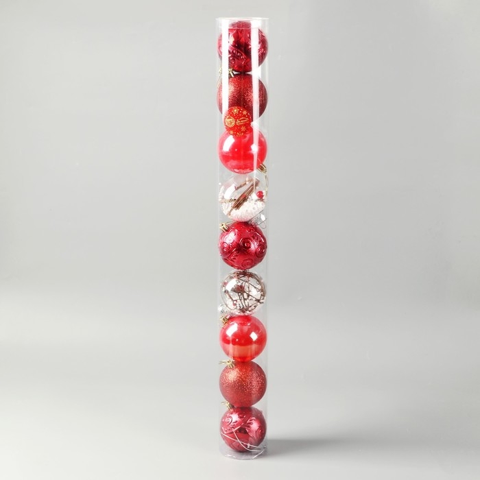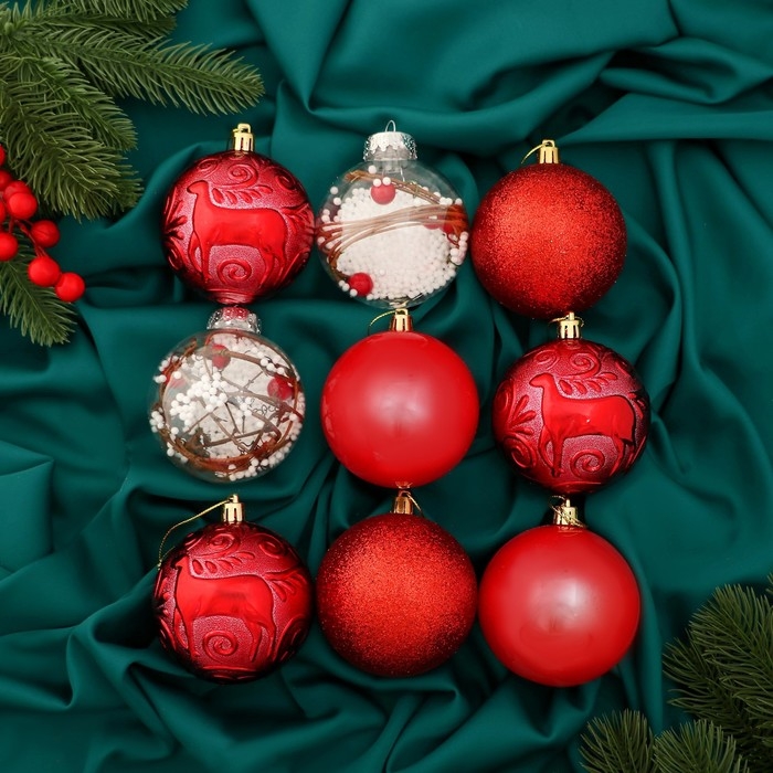 Набор шаров пластик d-8 см, 9 шт "Мелодия" веточки глянец, красный