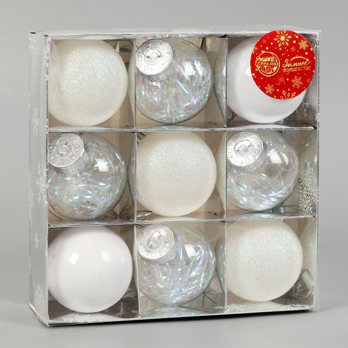 Набор шаров пластик d-6 см, 9 шт "Мелодия" диско ассорти, белый