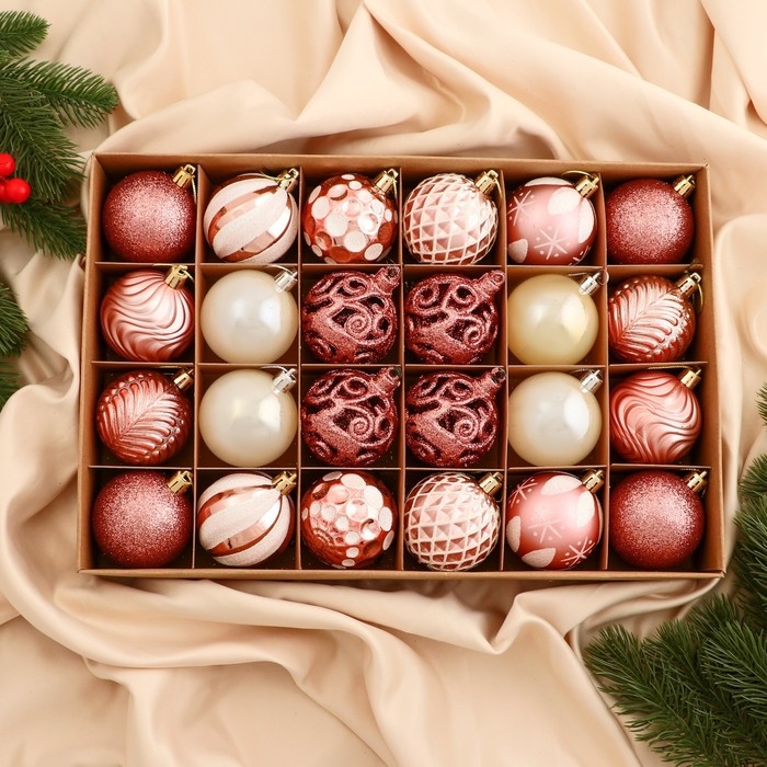 Набор шаров пластик d-6 см, 24 шт "Мелодия" ассорти люкс, бело-розовый