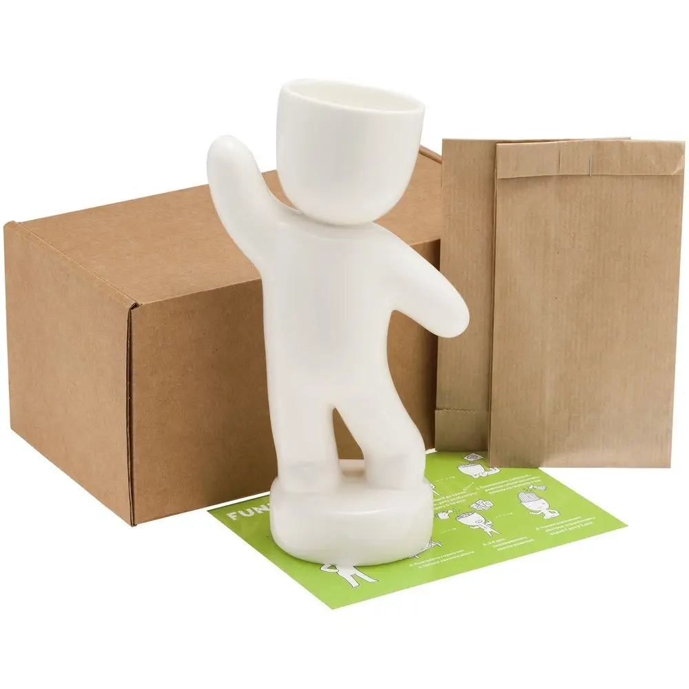 Фигурки Funky — экологичное украшение интерьера, кусочек зеленого газона в офисе или дома. Посадите волосы-травинки и наблюдайте, как меняется человечек. Вы можете сделать ему стильную стрижку, добавить настроения, нарисовав маркером лицо, — и поменять образ, когда трава снова подрастет.