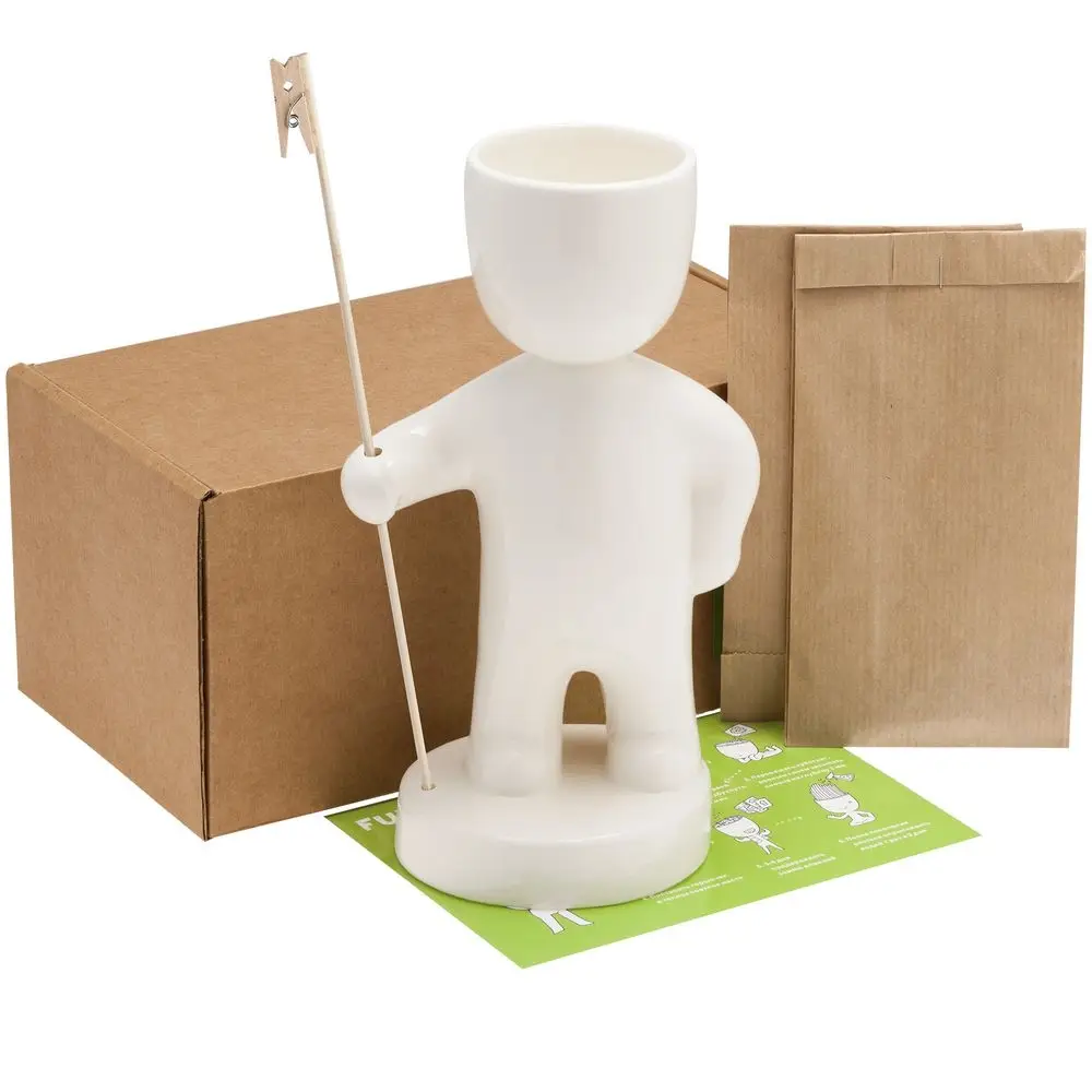 Фигурки Funky — экологичное украшение интерьера, кусочек зеленого газона в офисе или дома. Посадите волосы-травинки и наблюдайте, как меняется человечек. Вы можете сделать ему стильную стрижку, добавить настроения, нарисовав маркером лицо, — и поменять образ, когда трава снова подрастет.