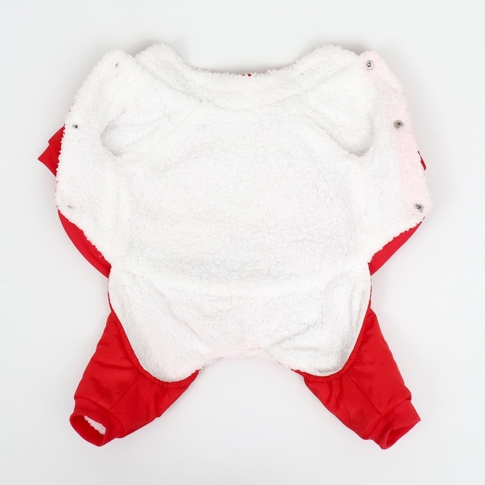 Комбинезон легко надевается на питомца , благодаря застежкам на кнопках.
