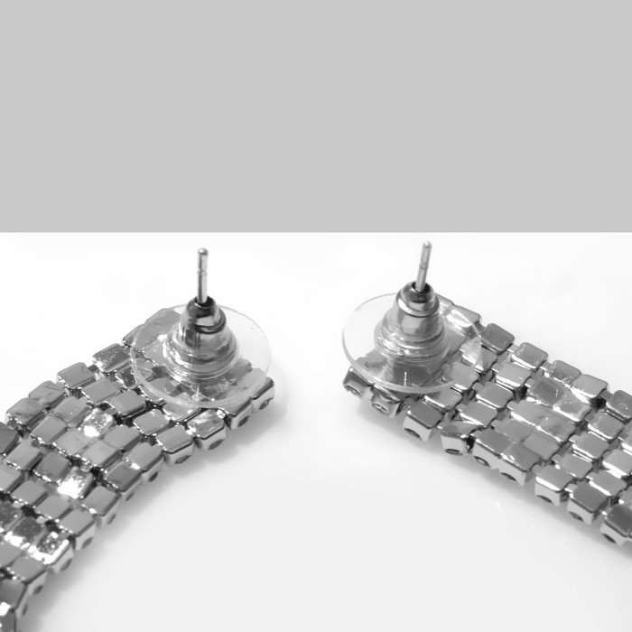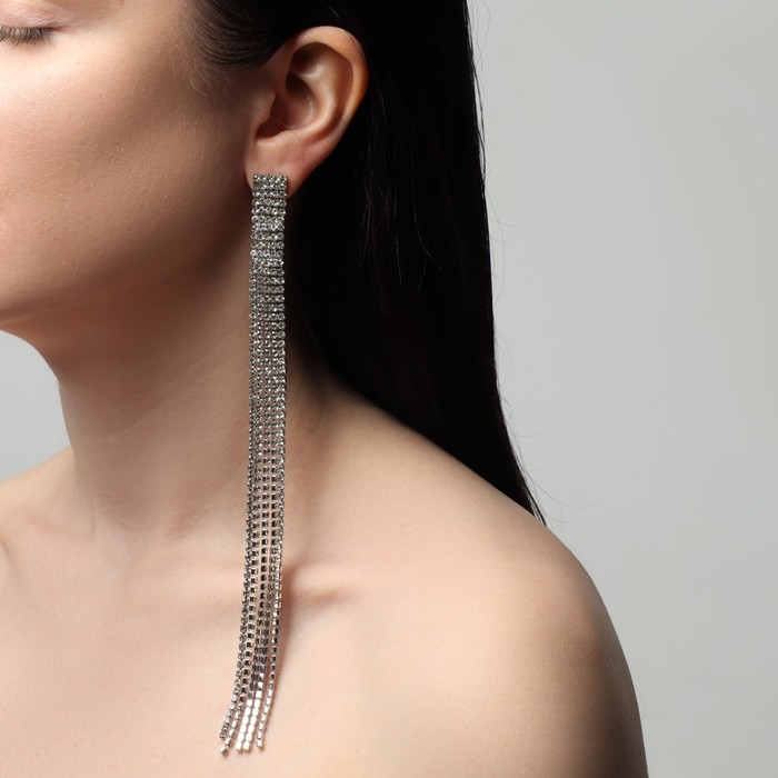 Серьги висячие со стразами «Водопад» мини квадрат, 5 нитей, цвет белый в серебре, 19,5 см