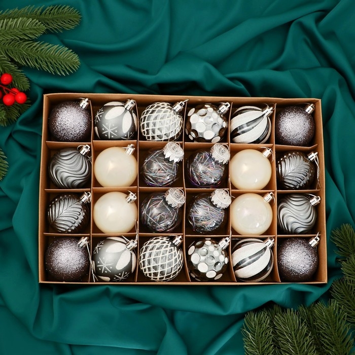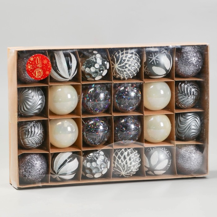 Набор шаров пластик d-6 см, 24 шт "Мелодия" ассорти люкс, белый серебро сиреневый
