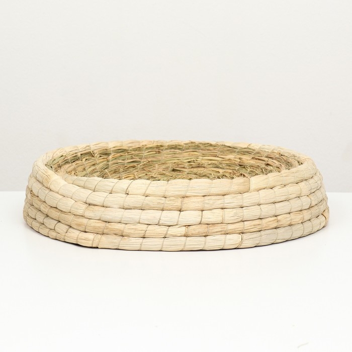 Плетеная лежанка для домашних животных, изготовленная из прочного и натурального рогоза, обеспечит вашему питомцу комфортное место для отдыха.