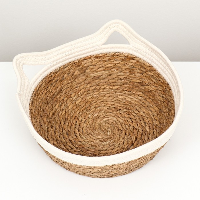Экологичный лежак для животных (хлопок+рогоз), 35 х 27 х 13 см, вес до 8 кг, белая