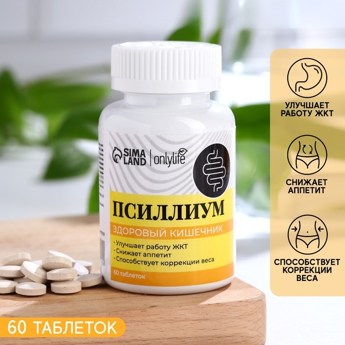 Псиллиум в таблетках, здоровый кишечик, 60 капсул