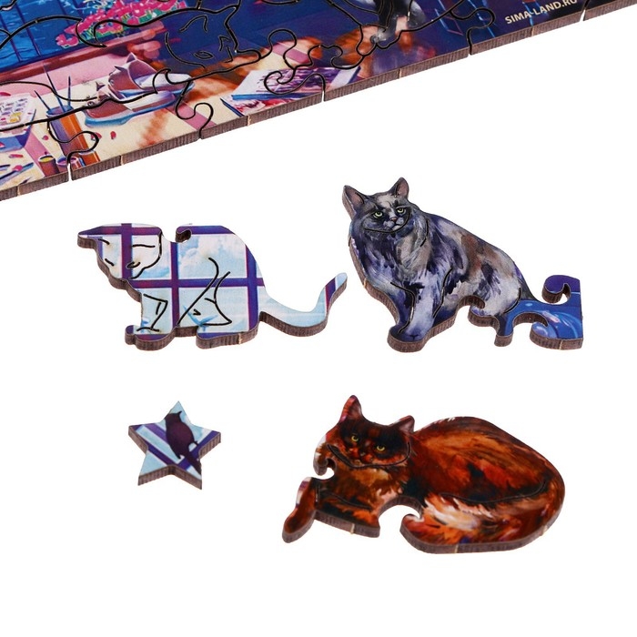 - Каждая деталь в наборе — это отдельная фигурка. Все они изготовлены из дерева, тщательно обработаны и не имеют заусенцев. Поэтому собирать такой пазл приятно и удобно.