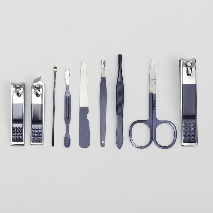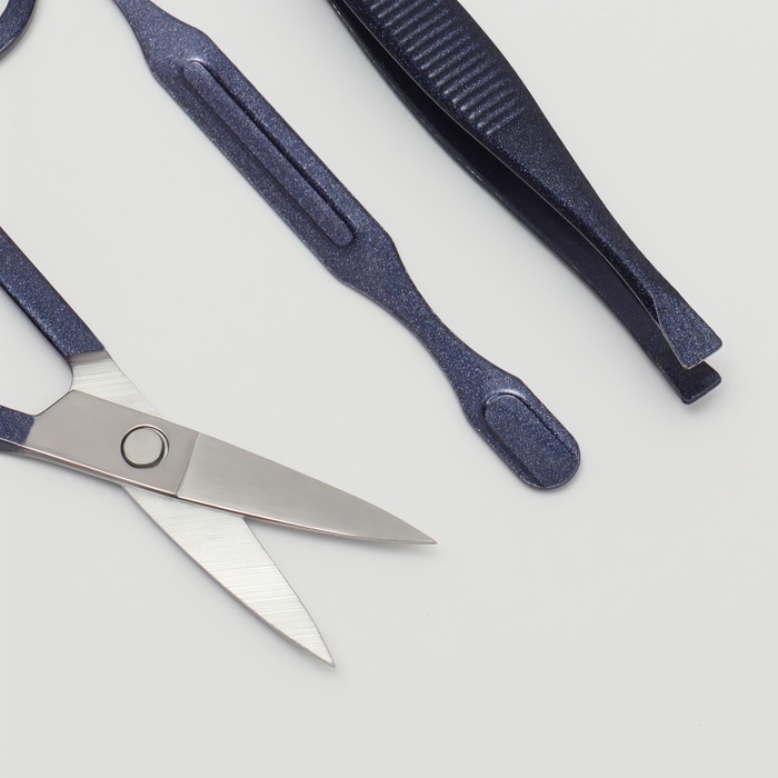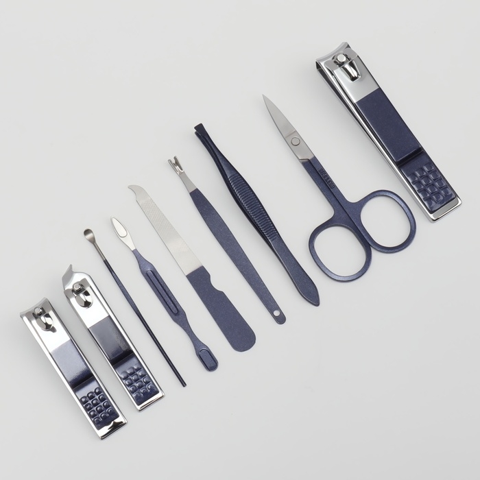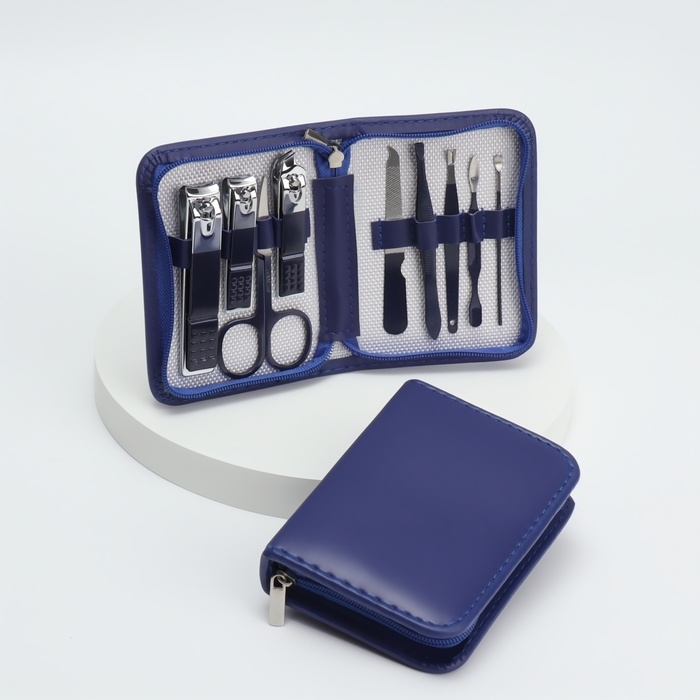 Набор маникюрный, 9 предметов, в футляре, цвет синий