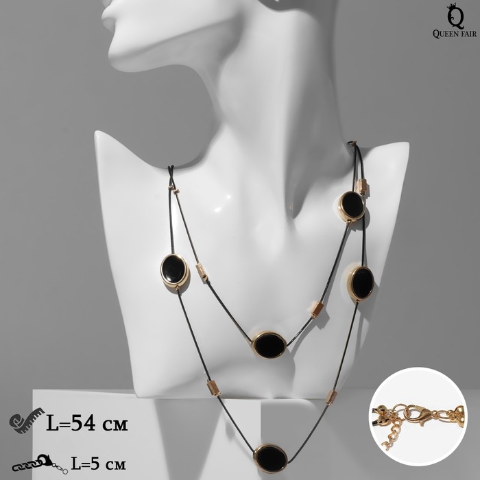 Бусы 2 яруса «Овалы» цвет чёрный в золоте, 54 см