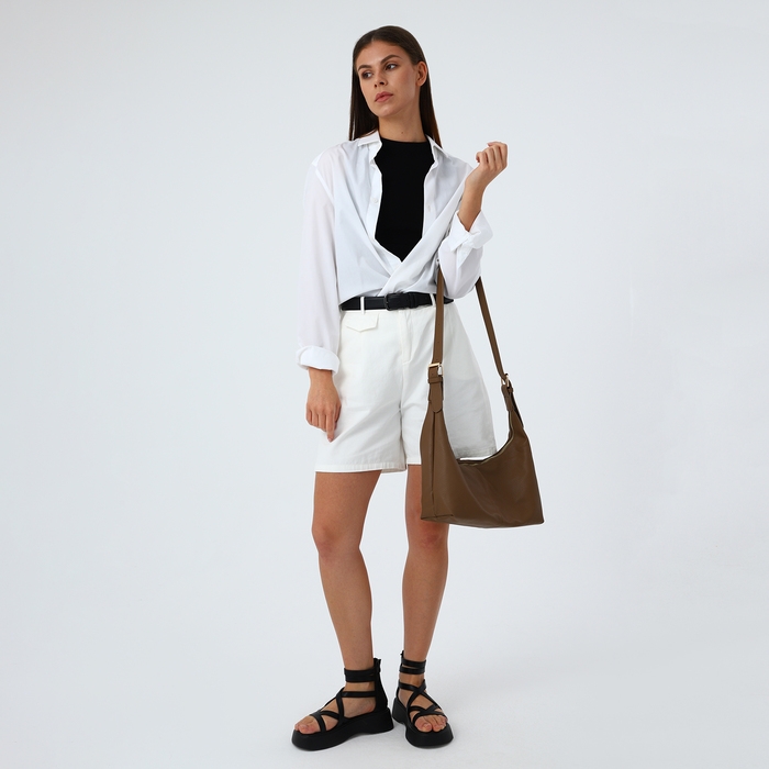 Сумка-багет на молнии, цвет светло-коричневый
