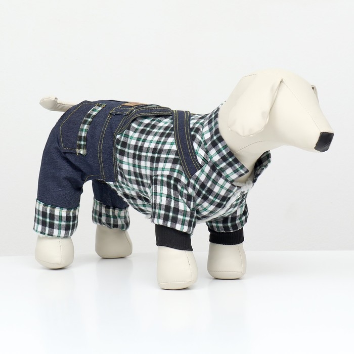 Элегантный дизайн комбинезона выполнен в виде джинсов и рубашки в клетку, который придает вашему питомцу оригинальный вид на прогулке.