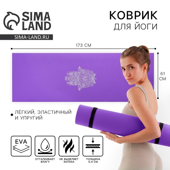 Коврик для йоги «Рука Фатимы», 173 х 61 х 0,4 см.
