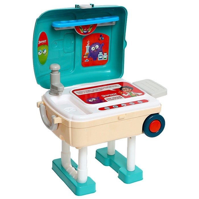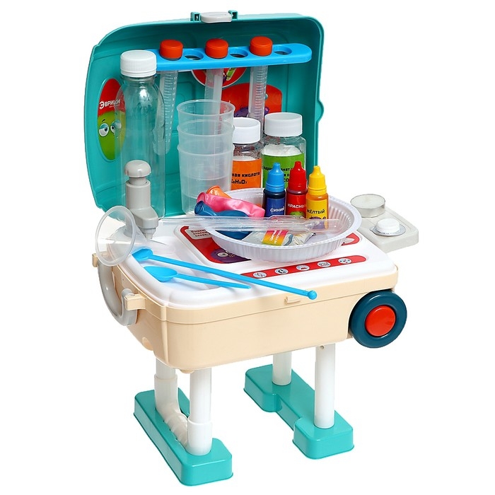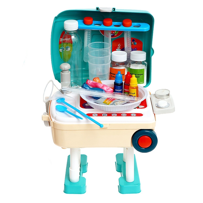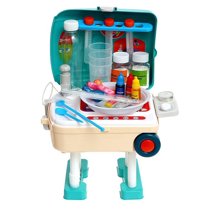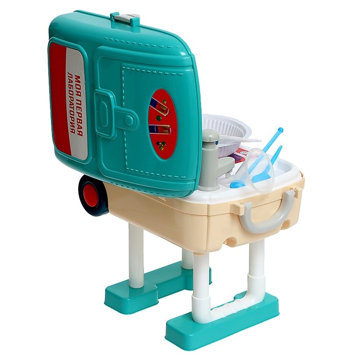 - Кейс трансформируется в мини-лабораторию с удобным столом и подставками.