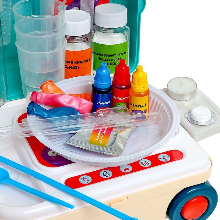 - После экспериментов можно вымыть руки: лаборатория имеет отсек для воды и рабочий кран (работает как насос).