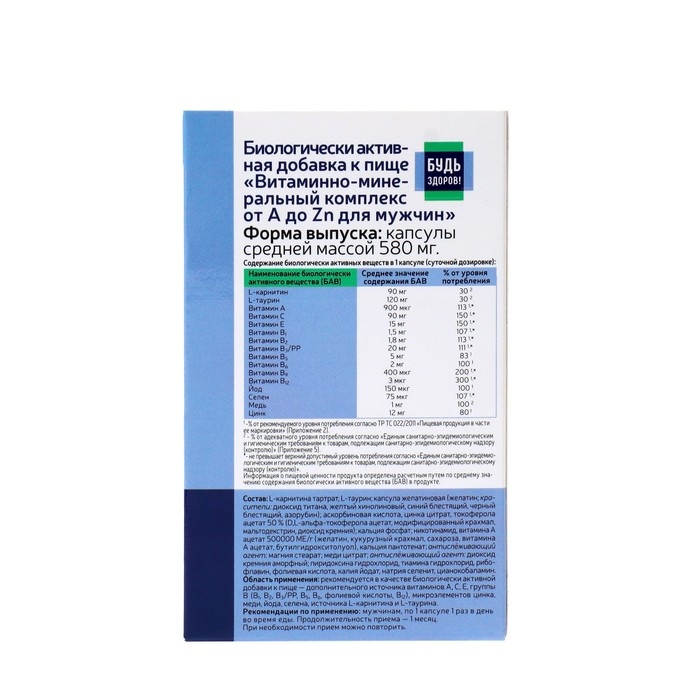 Витаминно-минеральный комплекс от А до Zn для мужчин "Будь здоров!", 30 капсул