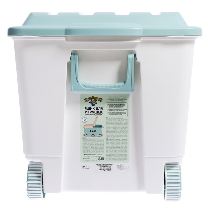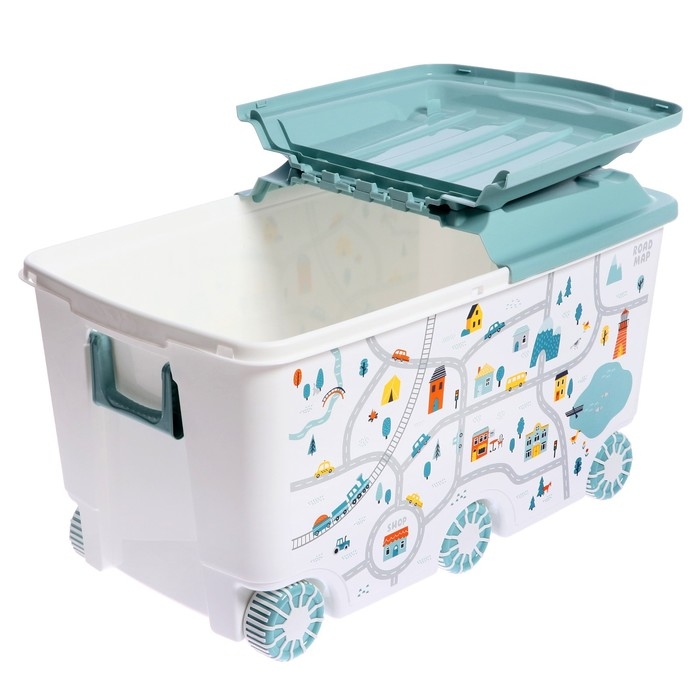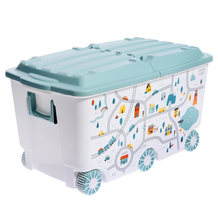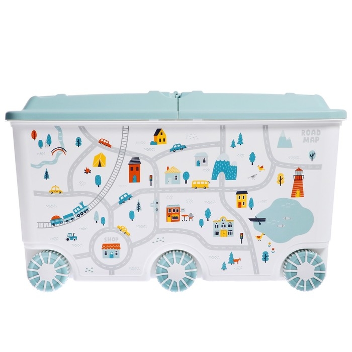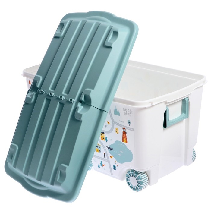 Ящик для игрушек на колесах «Путешествие», с декором, 685 × 395 × 385 мм, цвет светло-голубой