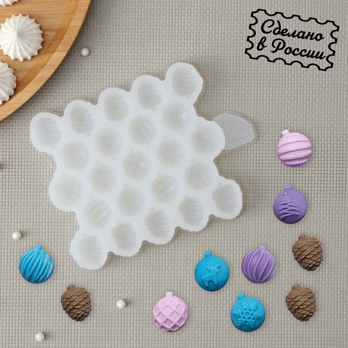Молд новогодний «Новогодняя атрибутика», силикон, 6,5×6,5 см, цвет розовый