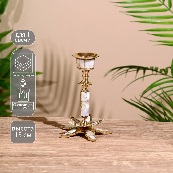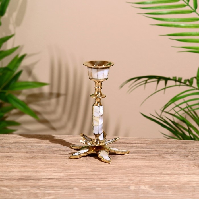 Подсвечник "Звезда" латунь, перламутр 13 см