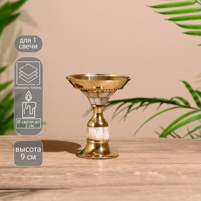 Подсвечник "Мирр" латунь, перламутр 9 см
