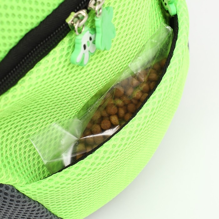 Рюкзак имеет несколько карманов, в которые можно поместить шлейку, игрушку или лакомство для вашего питомца.